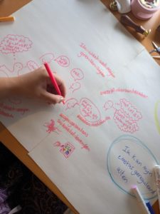 Benodigdheden: papier A2 formaat, stiften/potloden, 3D materiaal (denk aan: klei, karton, ijsstokjes, kurk, piepschuim).